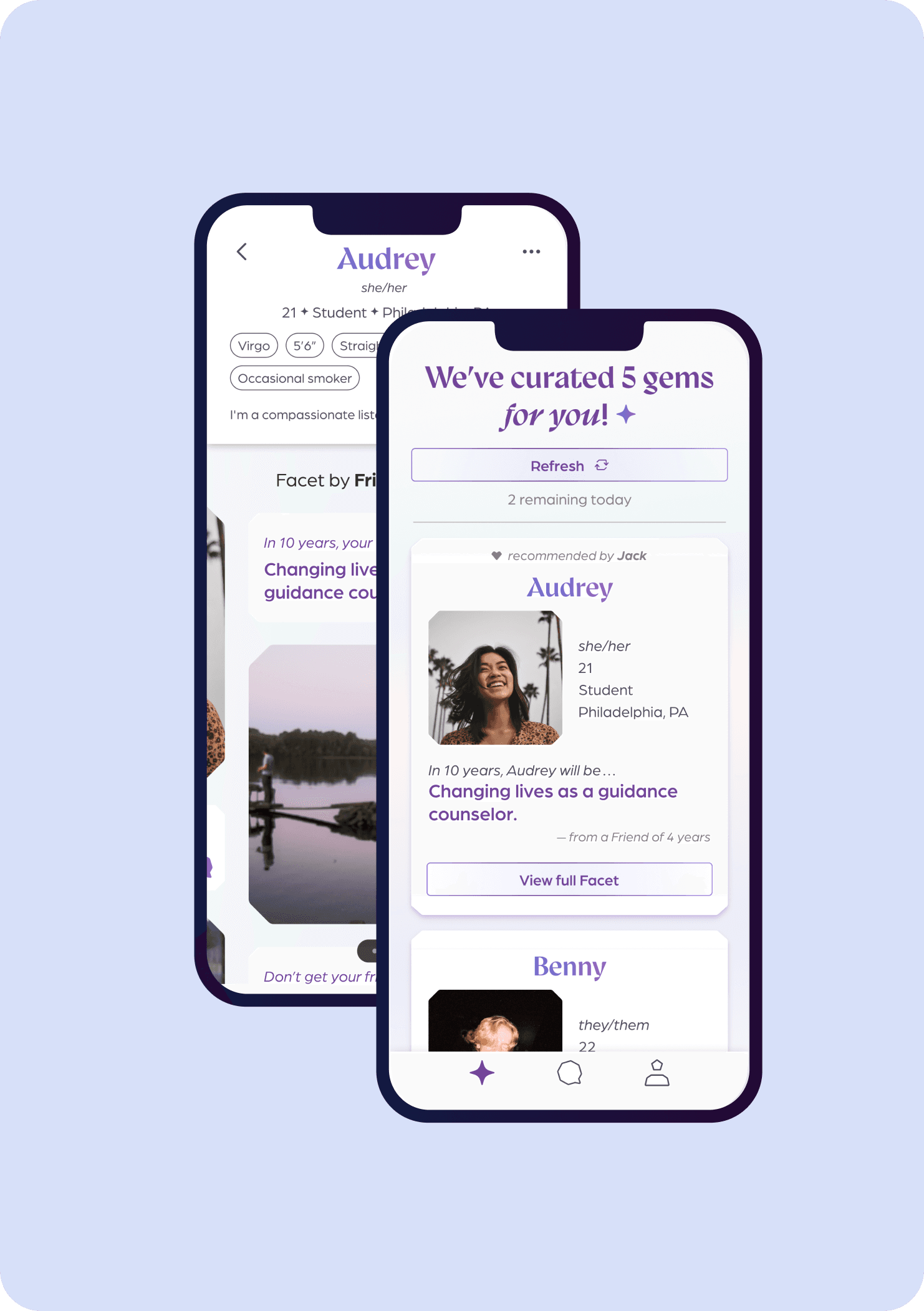In a fast-paced world of dating apps that are gamified, Facets is a dating app that encourages a true reflection of who you are and building genuine connections. Built so your friends can help curate your dating profile, Facets provides a platform that slows down the meet-cute process so you can truly find the one.
