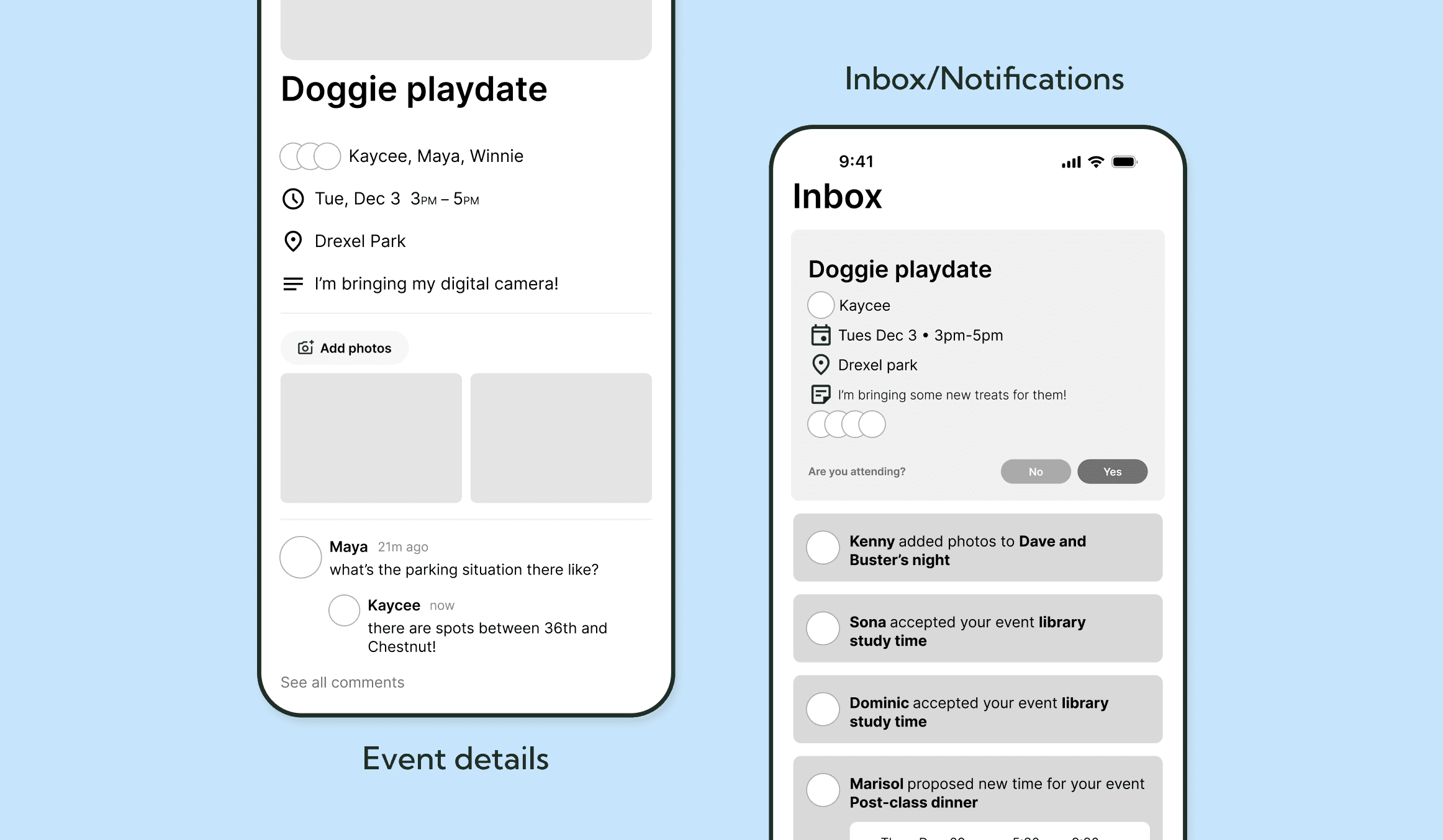 Having a place in the app for communication would be a valuable feature - from our initial research we found that communication around planning an event can become hectic when it happens in group chats