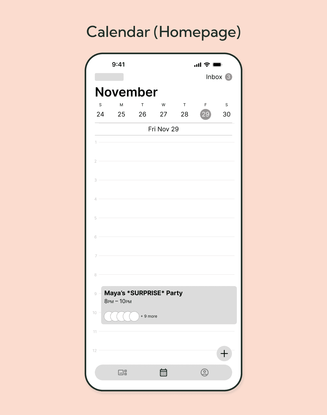 Our goals for the mid-fidelity prototype were to explore clearer and more intuitive ways to present a time selection feature so users can easily select the best time for an event. The prototype also aims to enhance event invitations with more relevant information, such as everyone's RSVP status, date/time/location, and notes and comments. We also began to explore a warm color palette and a scrapbook-type UI style.