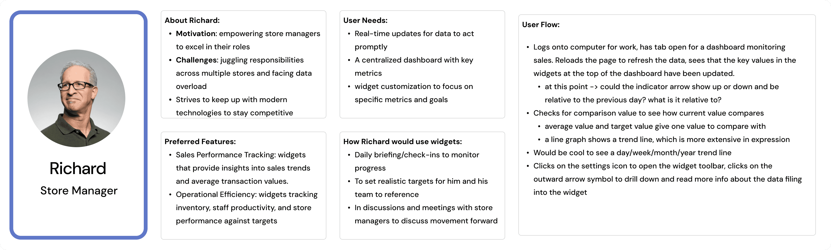 UX Research - Learning about KPI widgets, doing market research for existing solutions, user research, surveys/interviews to understand user needs
